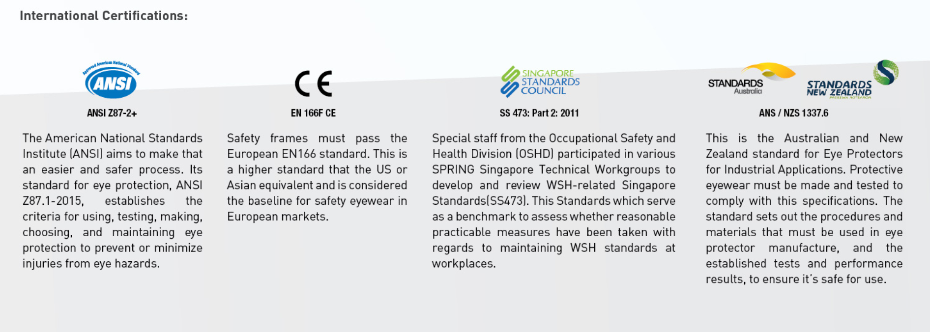 - ANSI Z87-2+ (Approved American National Standard)